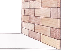 床の品質に負けないよう超厚単板を集成に貼ったものを採用。玄関や壁際のアクセントに。