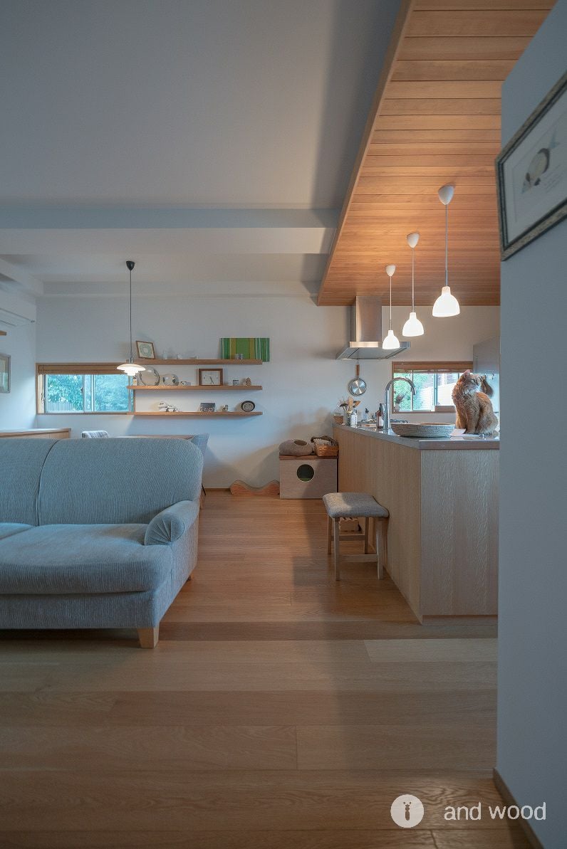 床は節少なめの幅広オーク床。