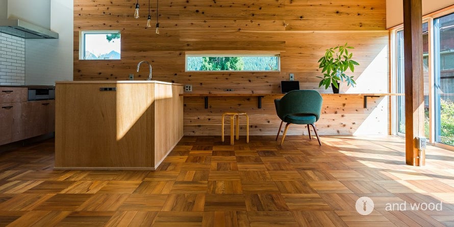 チークを市松模様にしたパーケットフローリング。