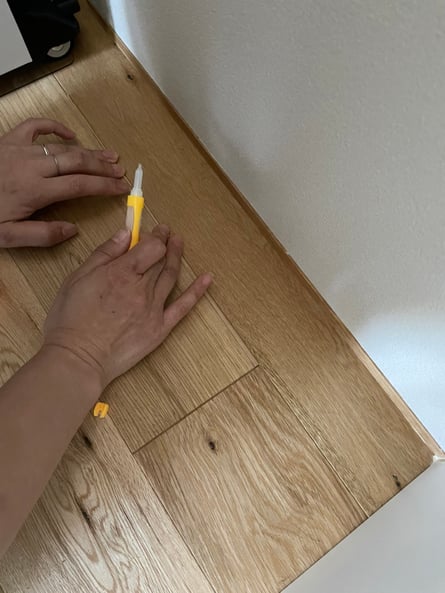 補修個所のつまようじは、後でまとめて折って床に馴染ませます。